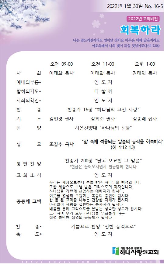 1월 30일 교회주보