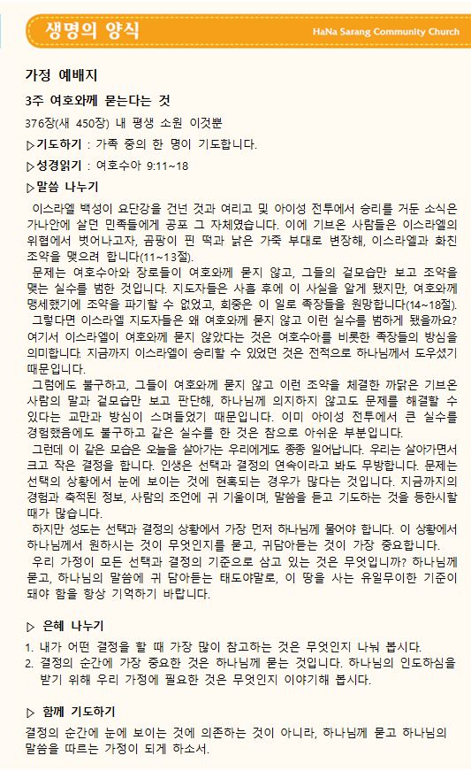 가정예배 나눔