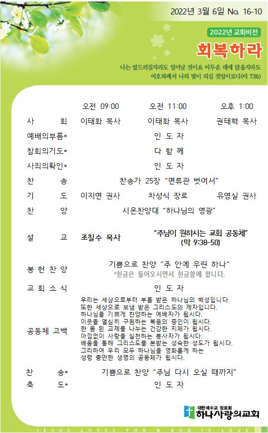 3월 6일 교회주보