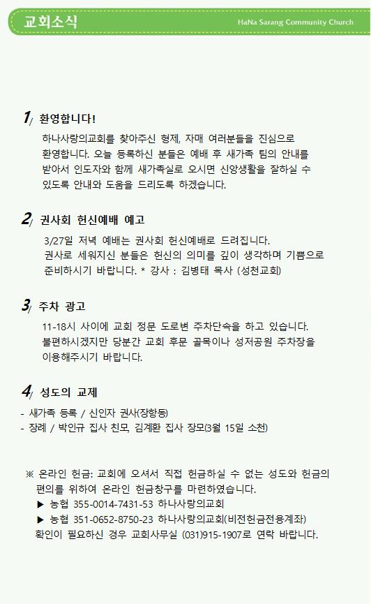 3월 20일 교회주보