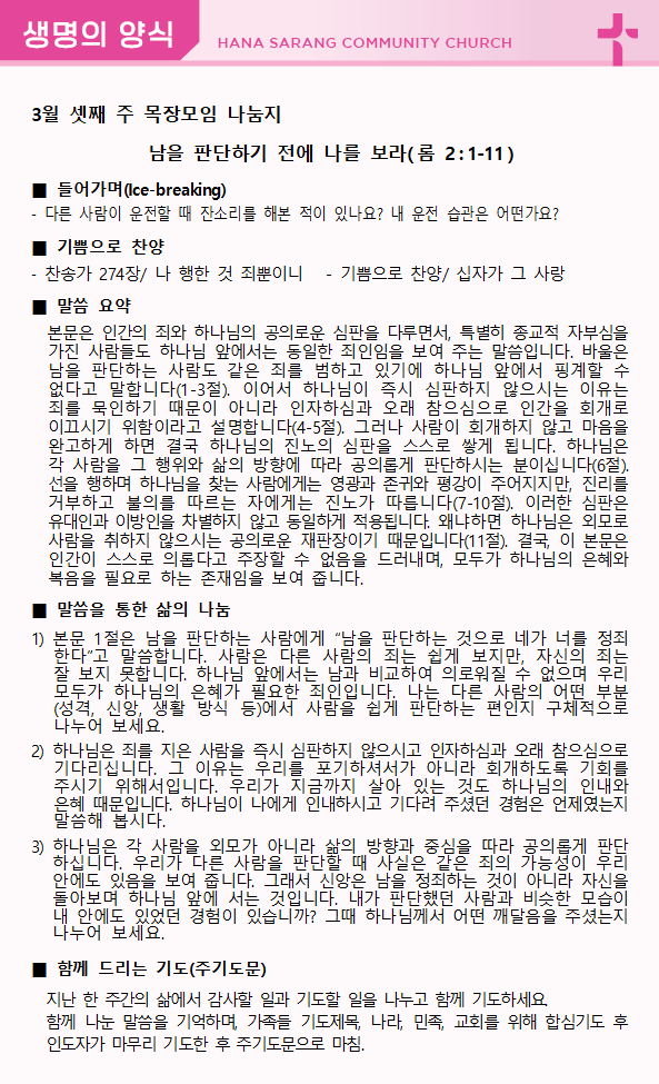 3월 15일 교회주보