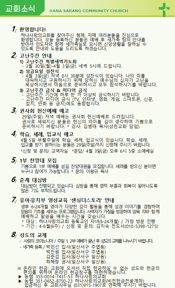 3월 22일 교회주보