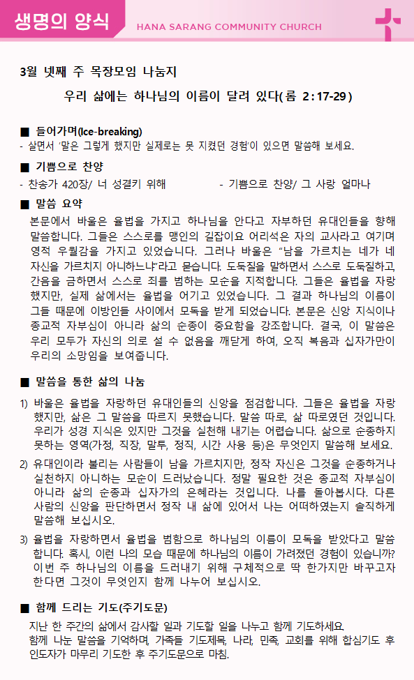 가정예배 나눔