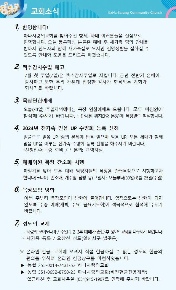 7월 7일 교회주보