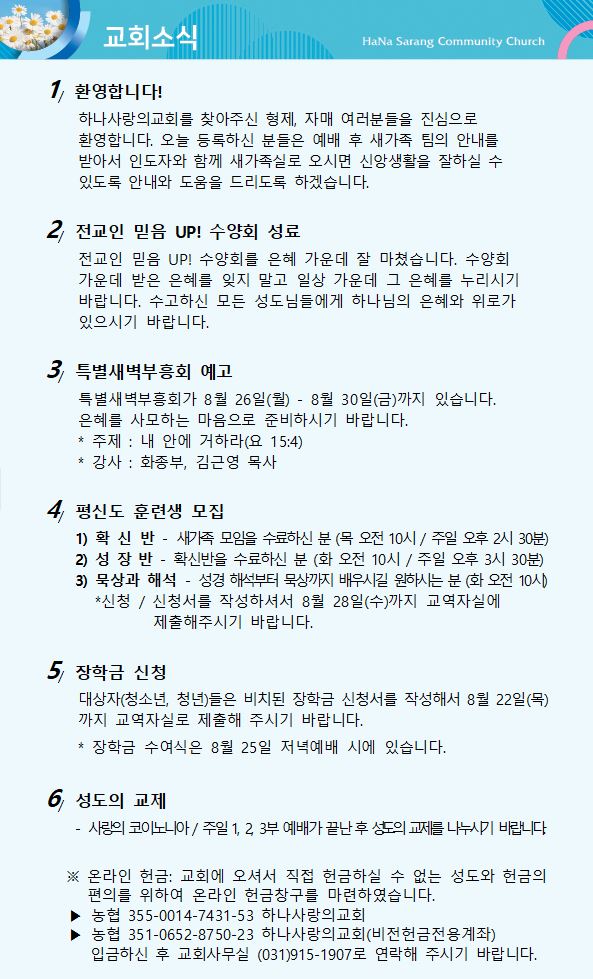 8월 25일 교회주보