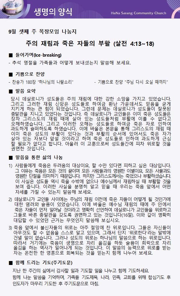 9월 22일 교회주보