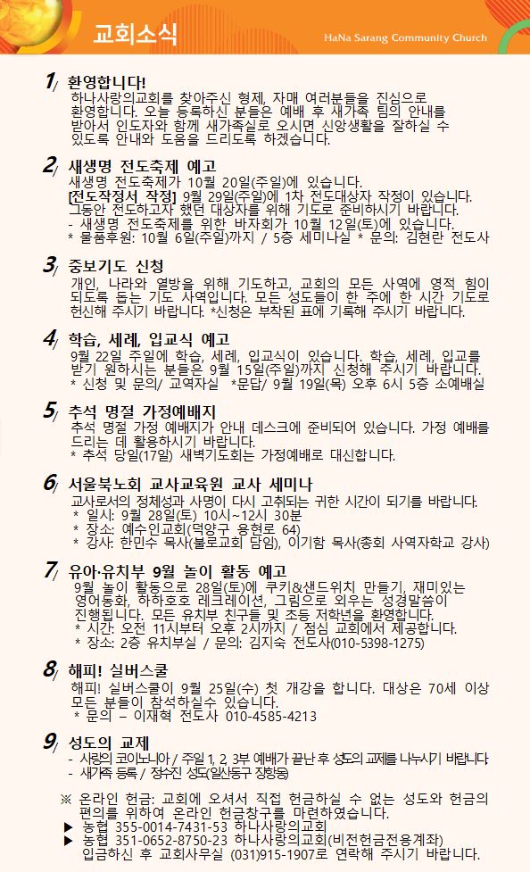 9월 8일 교회주보