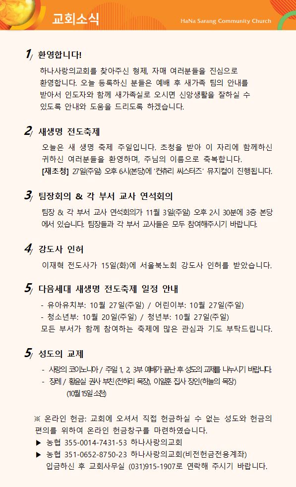 10월 20일 교회주보