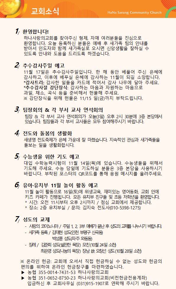 11월 10일 교회주보