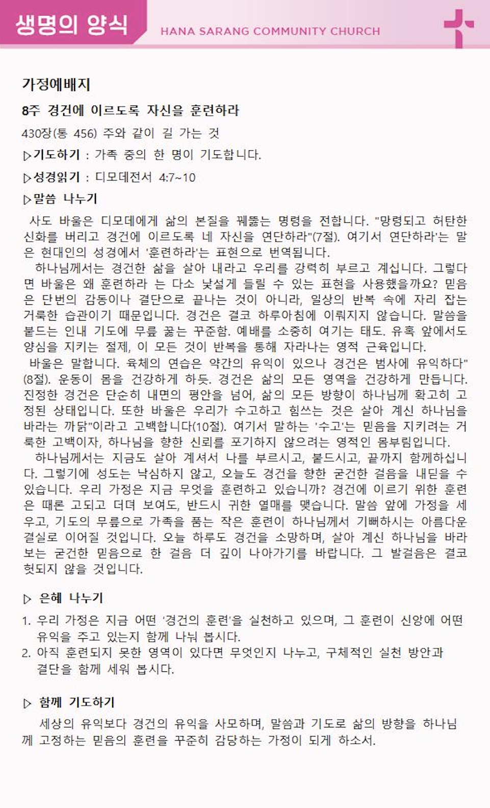 가정예배 나눔