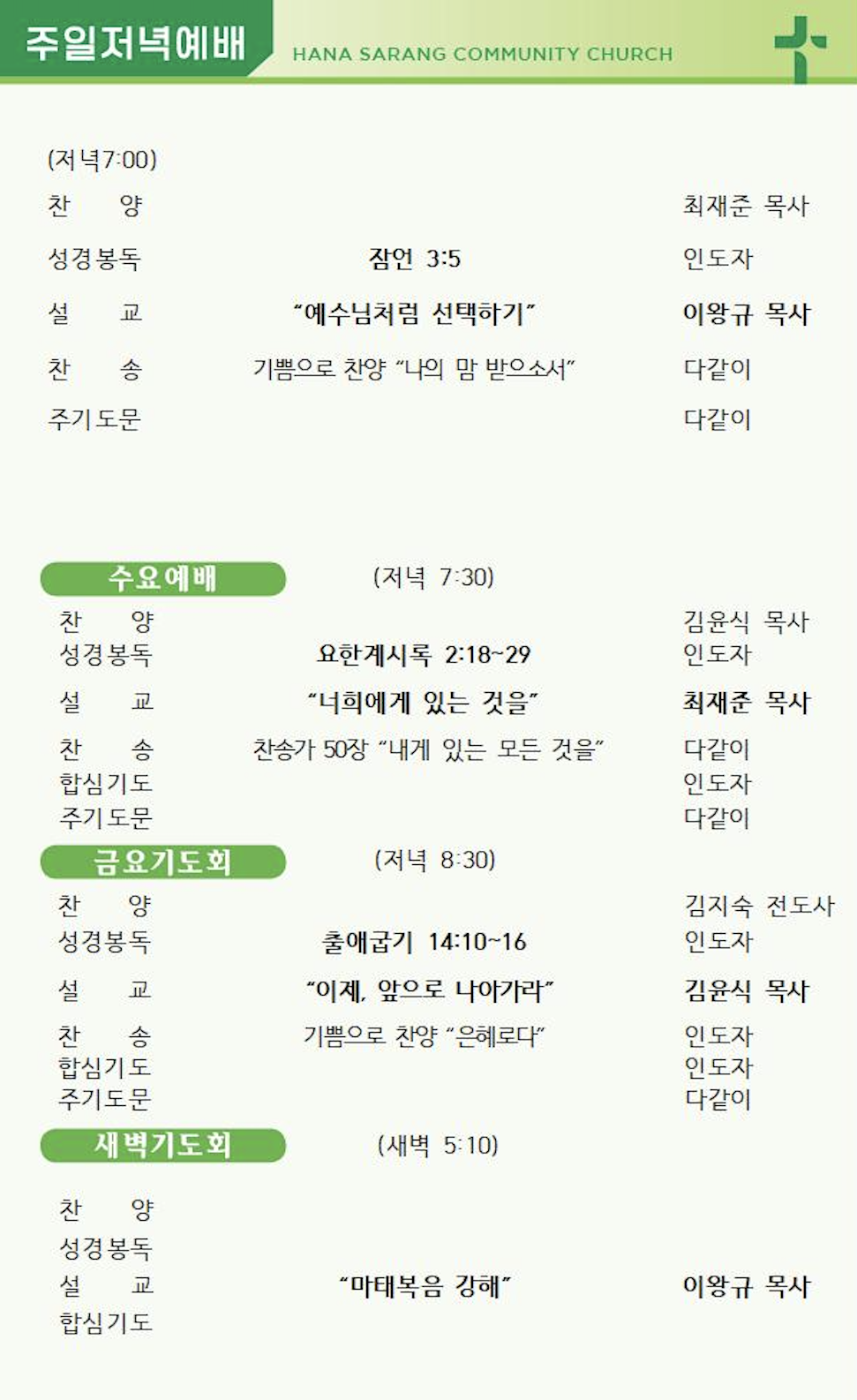 수요저녁예배
