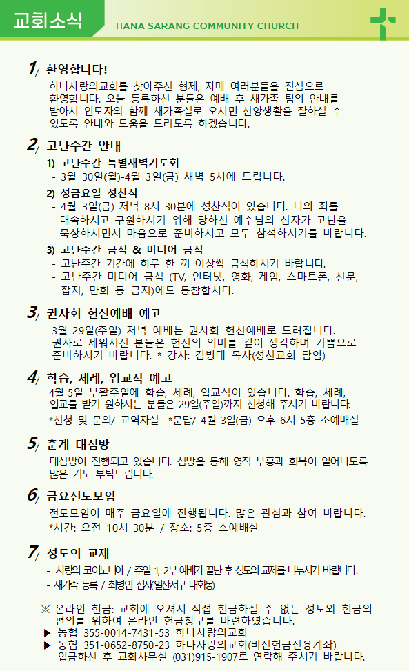 3월 15일 교회주보